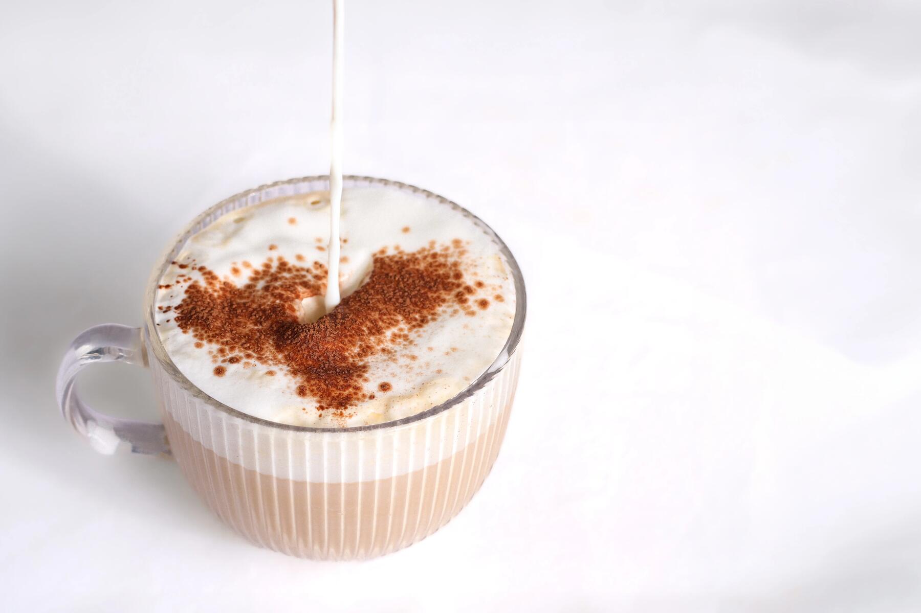 Faire mousser un peu de lait et déposer sur le dessus de la préparation.