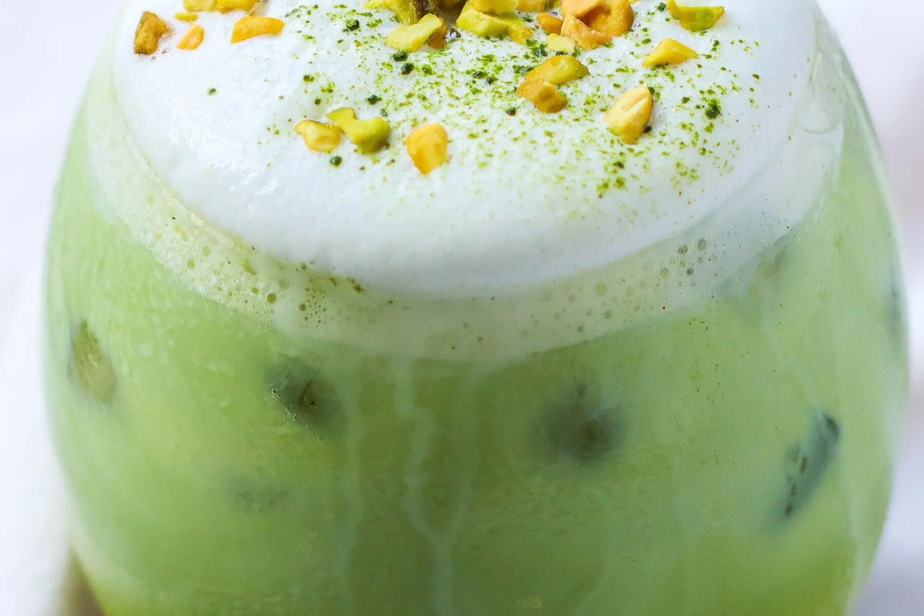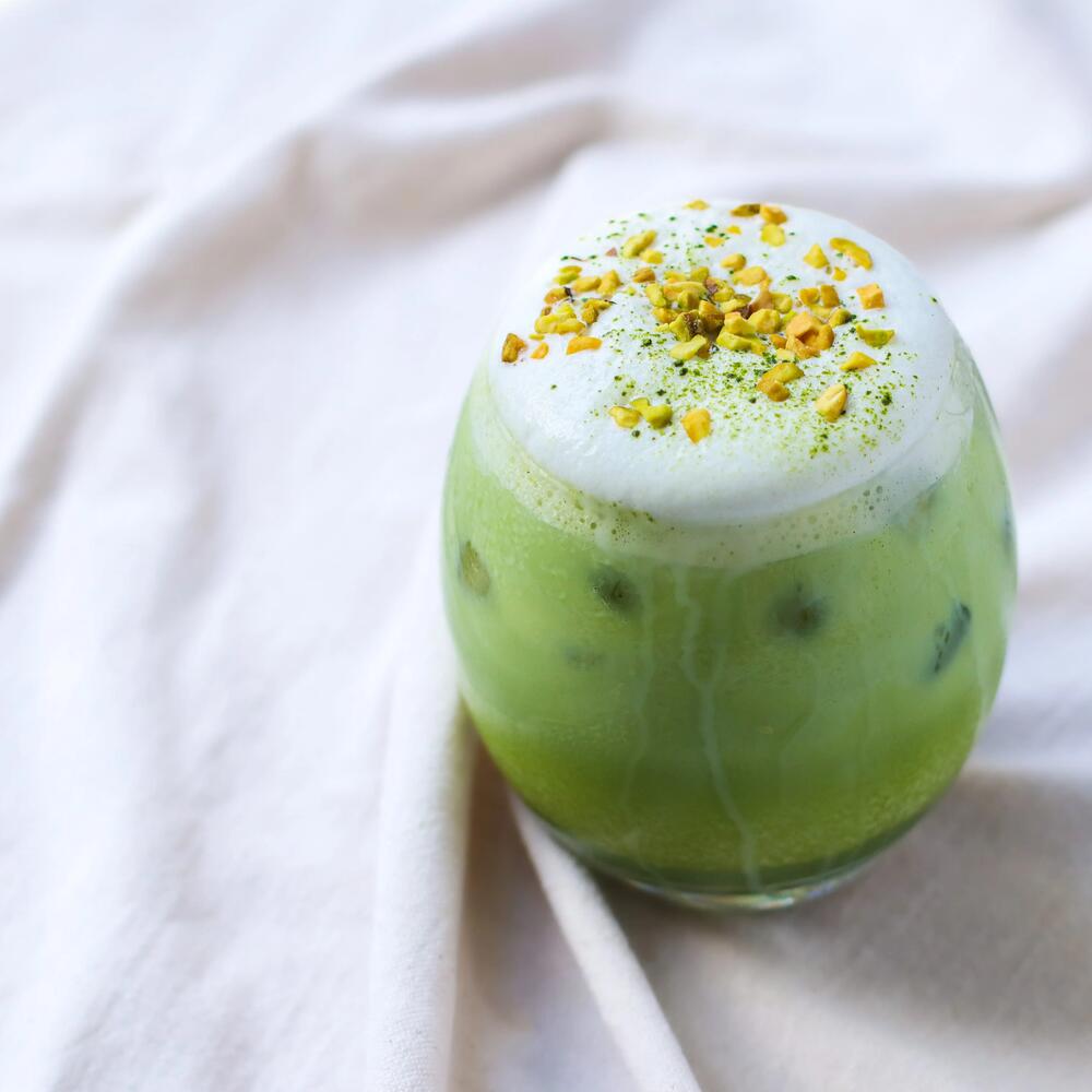 Cette boisson au matcha, pistache et collagène combine plaisir du palais et bienfaits, grâce au collagène qu'elle contient.